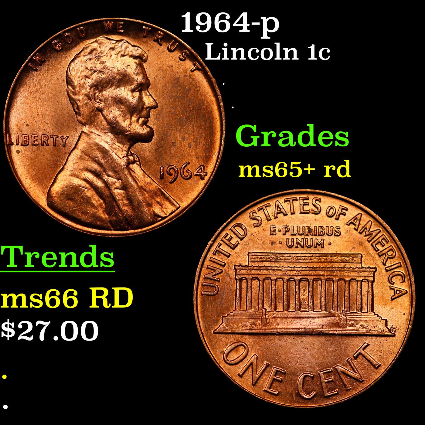 1964-p Lincoln Cent 1c Grades Gem+ Unc RD.