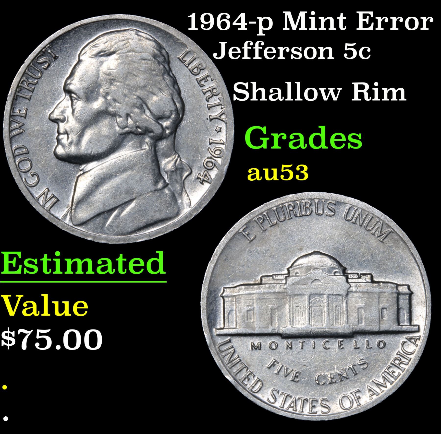 1964-p Mint Error Shallow Rim . Jefferson Nickel 5c Grades Select AU.