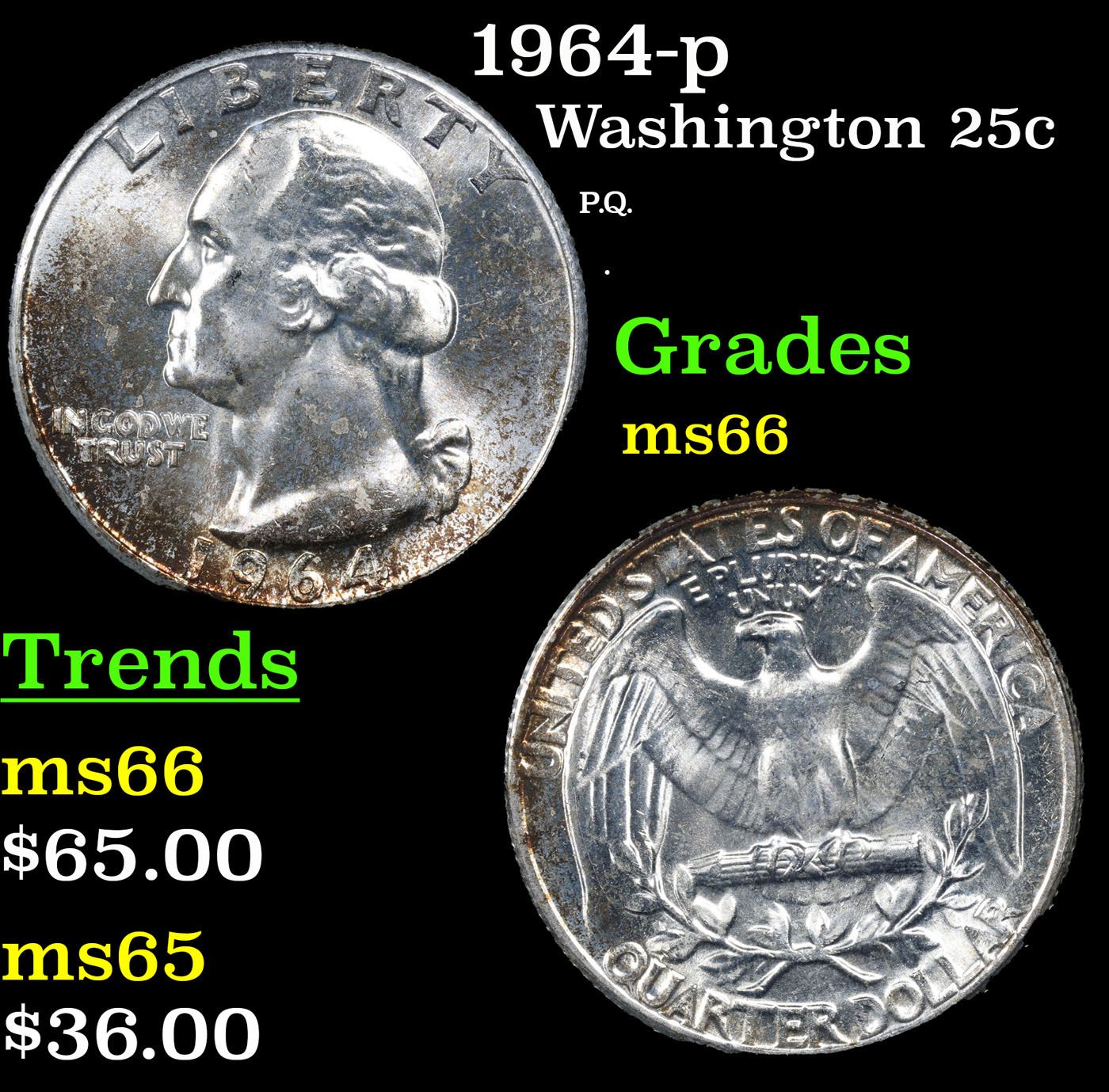 1964-p Washington Quarter 25c Grades GEM+ Unc.