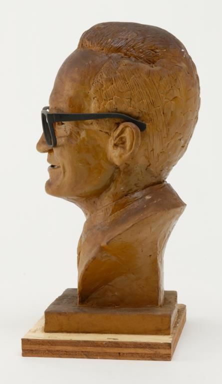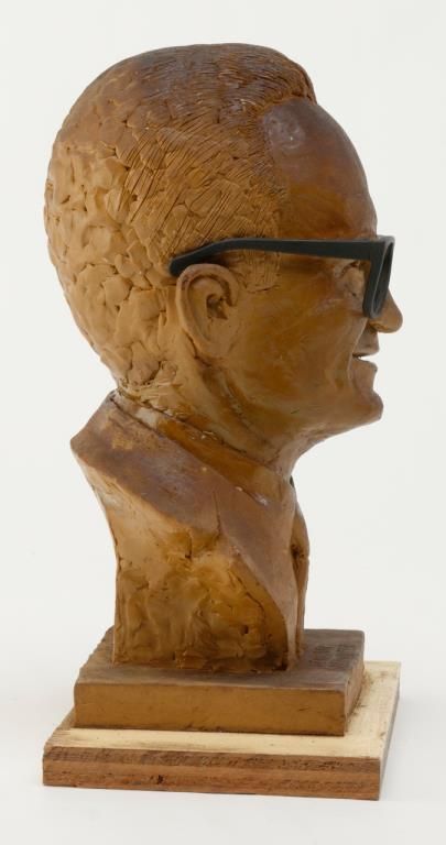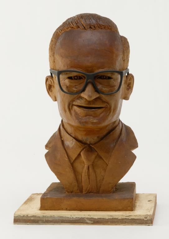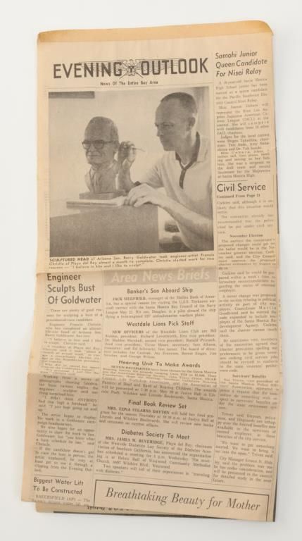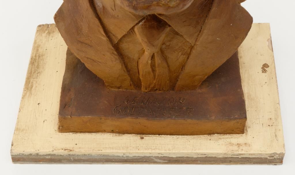1964 sculptured clay of Barry Goldwater - an original by Francis Christie of Playa Del Rey, CA with original newspaper article of artist and sculpture; would be a great period art piece to mold wax for bronze; approx. 12" in height and nicely accomplished. Est.: $150-$300.