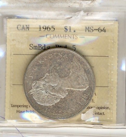 1965 1 Dollars, ICCS MS64; SmBds Ptd 5.