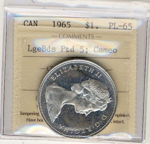 1965 1 Dollars, ICCS PL65; LgeBds Ptd 5, Cameo.