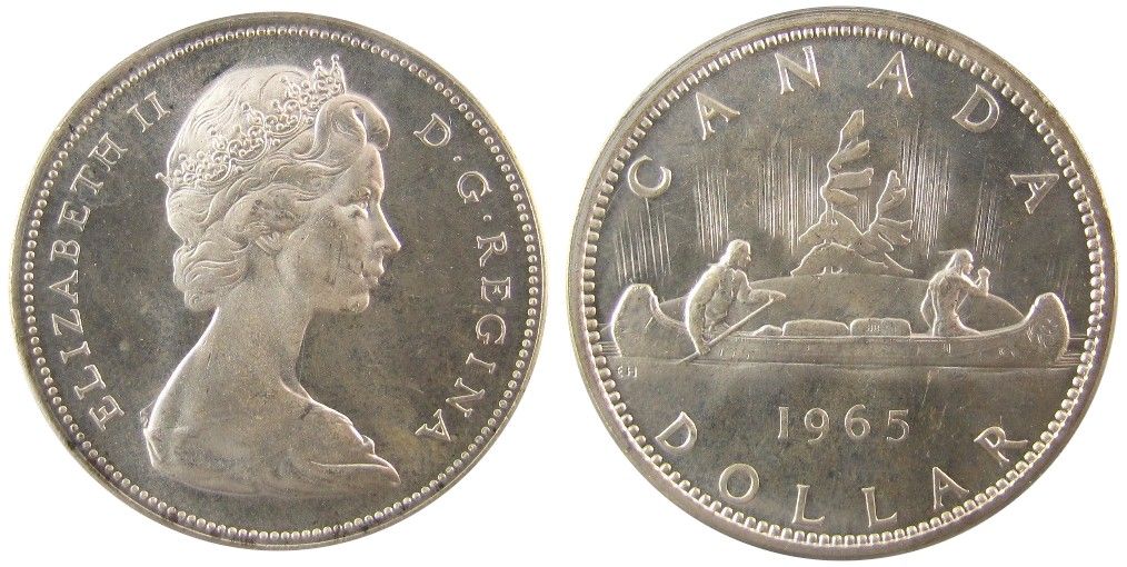 1965 $1 ICCS MS66, PCGS MS65. Full blast white with strong lustre. Should designate Type 3 LgBds Blt5.