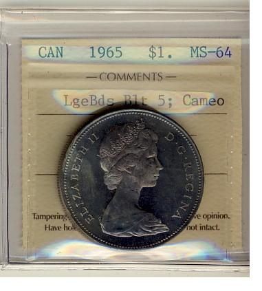 1965 $1 LgBds Blt 5 ICCS MS64 Cameo.