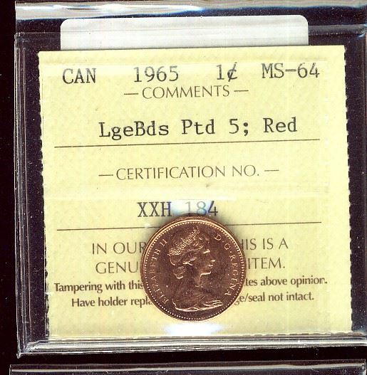 1965 1¢ LgBds Blt 5 ICCS MS64RD.