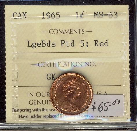 1965 1¢ LgeBds Ptd 5 ICCS MS63 Red