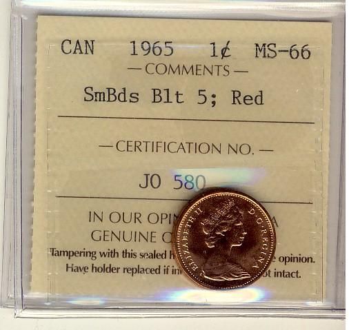 1965 1¢ SmBds Blt 5 ICCS MS66 Full Red, A superb GEM example.