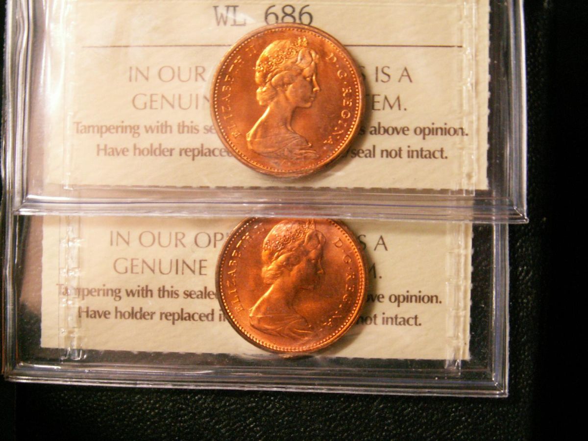 1965 1¢ SmBds Blt 5 & LgBds Blt 5 ICCS MS66. Lot of 2 coins both Top 8 graded by ICCS.