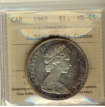 1965 $1 SmBds Ptd 5 ICCS MS65 Cameo.