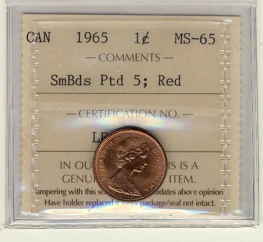 1965 1¢ SmBds Ptd 5 ICCS MS65 Full Red, A superb GEM example.