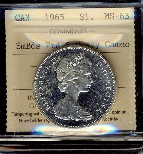 1965 $1 SmBds Ptd ICCS MS63 Heavy Cameo.