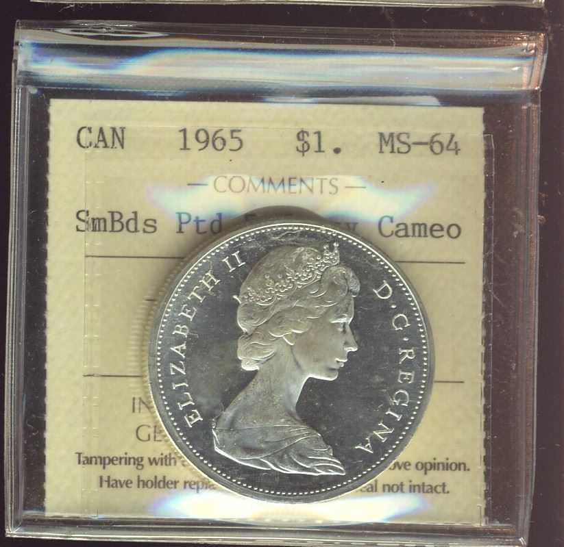 1965 $1 SmBds Ptd ICCS MS64 Heavy Cameo.