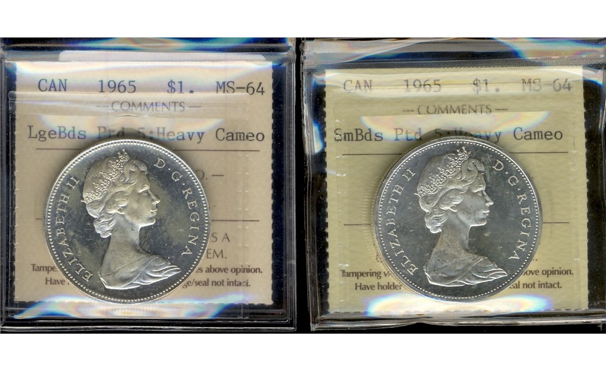 1965 $1 Smbds Ptd & LgBds Blt ICCS MS64 Heavy Cameo. Lot of 2 coins.