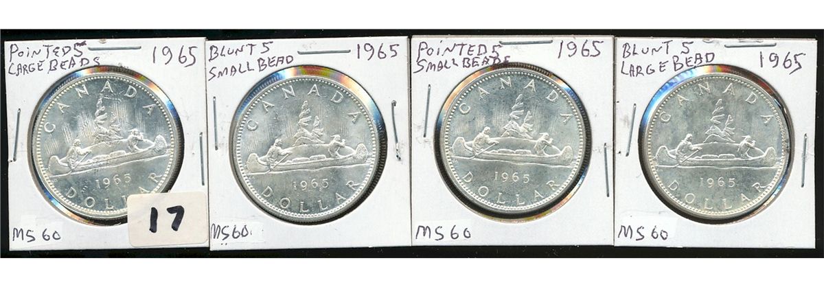1965 $1 Type 1 throught to Type 4. Lot of 4 coins all Brilliant AU to UNC.