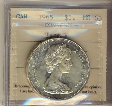 1965 $1 Type 5 ICCS MS65. Full white example.