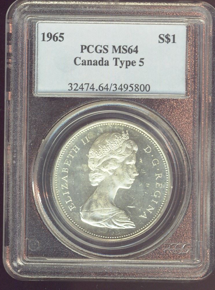 1965 $1 Type 5 PCGS MS64. Attracitve deep russet tones.