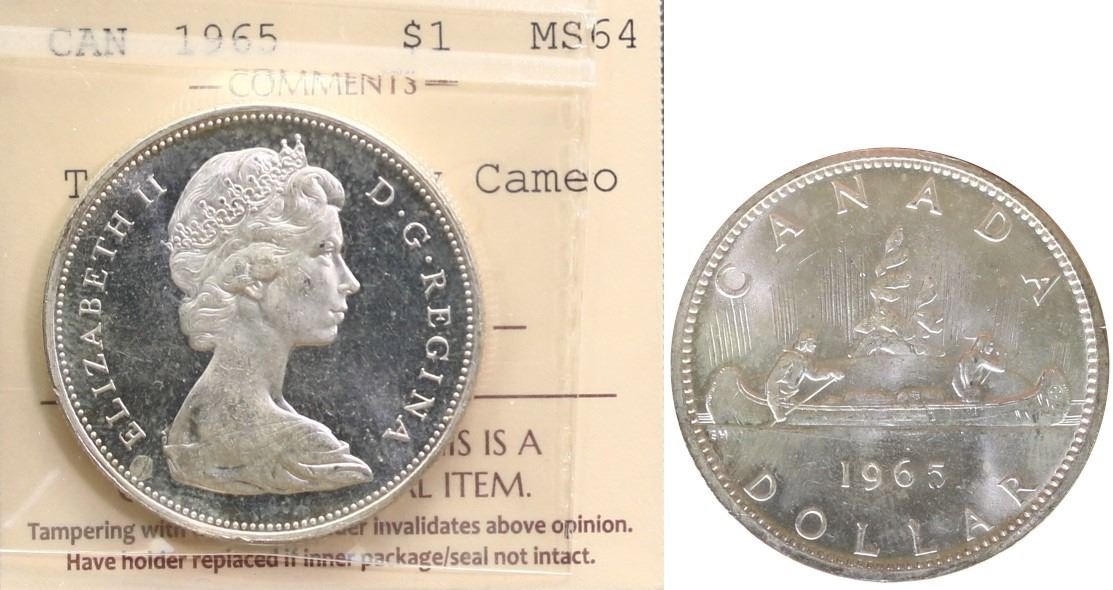 1965 $1 Type V ICCS Choice Mint State-64 Heavy Cameo.