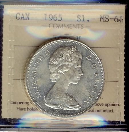 1965 $1 Type V ICCS MS64.