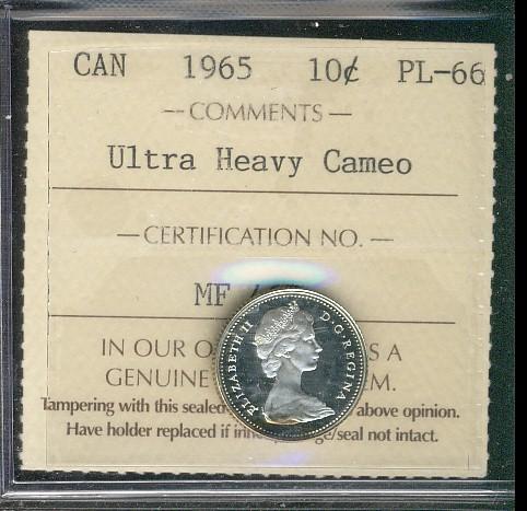 1965 10¢ ICCS PL66 Ultra Heavy Cameo