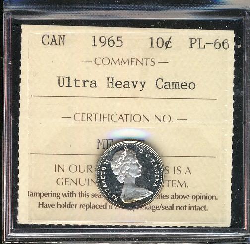 1965 10¢ ICCS PL66 Ultra Heavy Cameo.