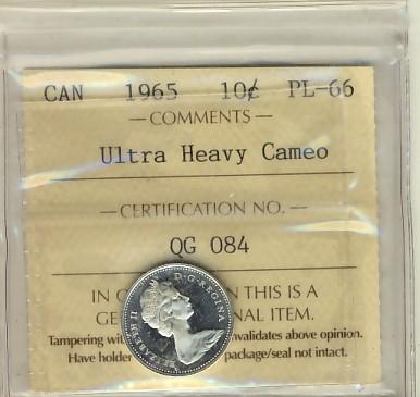 1965 10¢ ICCS PL66 Ultra Heavy Cameo.