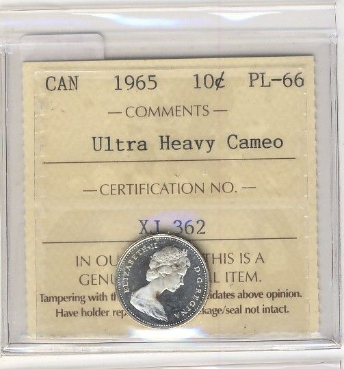 1965 10¢ ICCS PL66 Ultra Heavy Cameo.