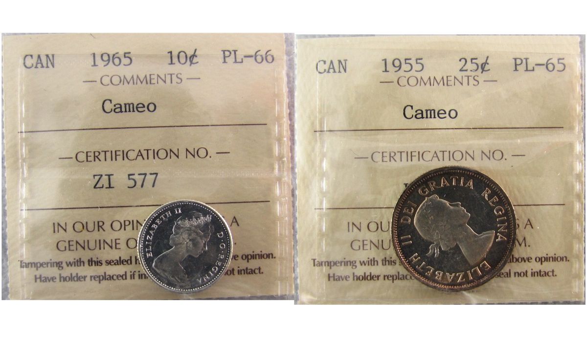 1965 10¢ PL66 & 1955 25¢ PL65. Lot of 2 ICCS coins both Cameo.