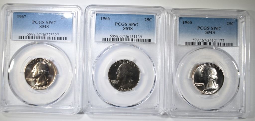 1965, 1966, & 1967 SMS QUARTERS, PCGS SP67