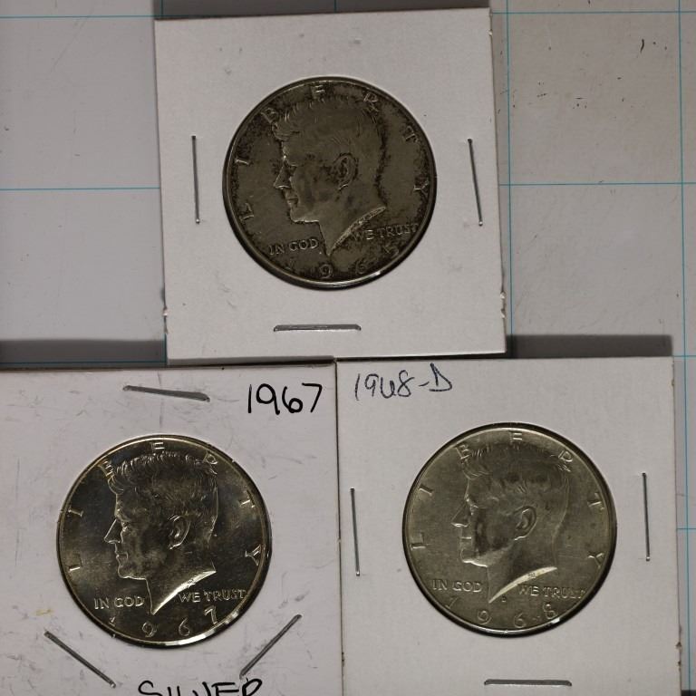 1965, 1967 & 1968-D 40% SILVER JFK HALF DOLLARS