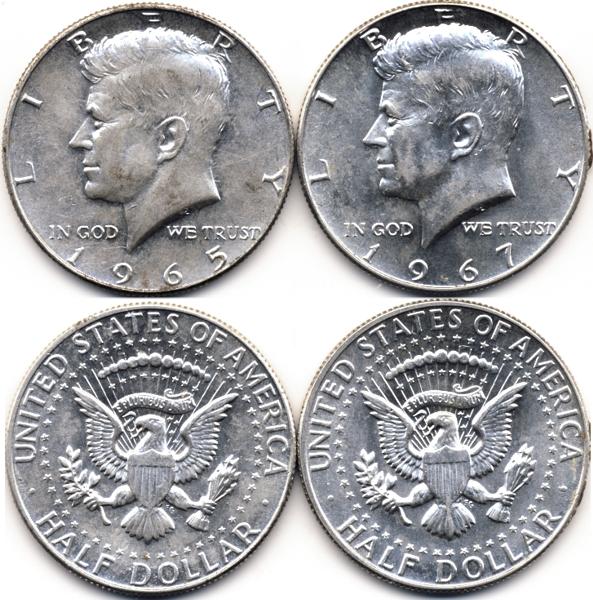 1965 & 1967 SILVER KENNEDY HALF DOLLARS-UNC (40%)