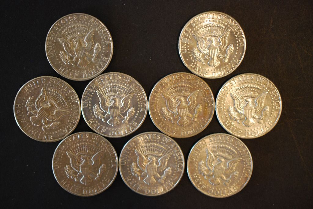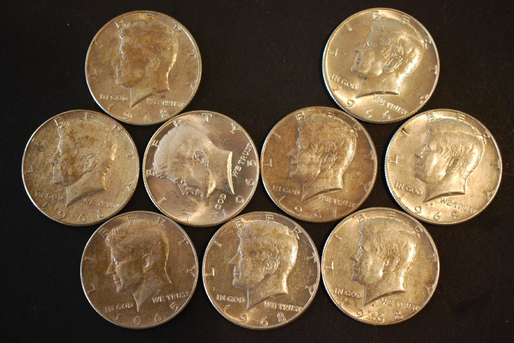 1965-1968 Kennedy 50C; Various Mint Marks; Lot of 9; EST. $10-20