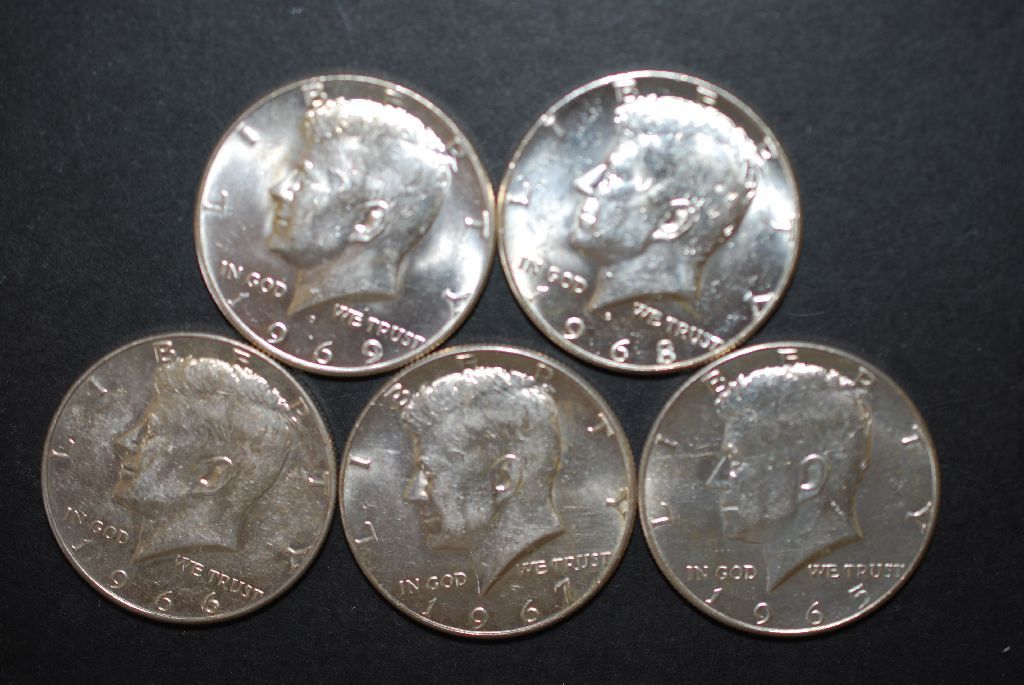 1965-1969 US Kennedy Half Dollar; Various Conditions; Lot of 5 Consecutive Years; EST. $40-50