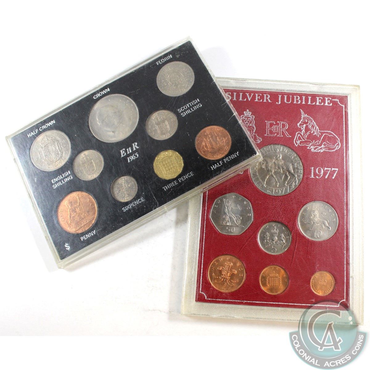 1965 & 1977 Great Britain Commemorative Coin Sets. Set are impaired. 2pcs
