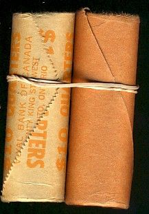 1965 25¢ & 1966 BU Rolls. Original rolls wrapped by The Royal Bank of Canada. Lot of 2 rolls. Unopened and unsearched rolls.