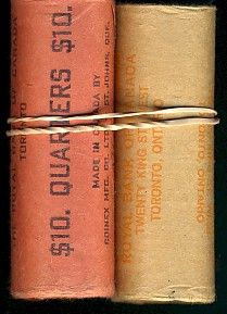 1965 25¢ & 1966 BU Rolls. Original rolls wrapped by The Royal Bank of Canada. Lot of 2 rolls. Unopened and unsearched rolls.