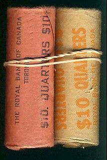 1965 25¢ & 1966 BU Rolls. Original rolls wrapped by The Royal Bank of Canada. Lot of 2 rolls. Unopened and unsearched rolls.