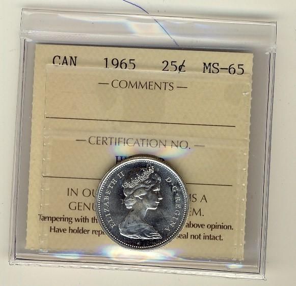1965 25¢ ICCS MS65 brilliant and lustrous.