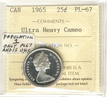 1965 25¢ ICCS PL67 Ultra Heavy Cameo. WOW! Only example in PL67 with this coin desighnated Heavy Cameo.