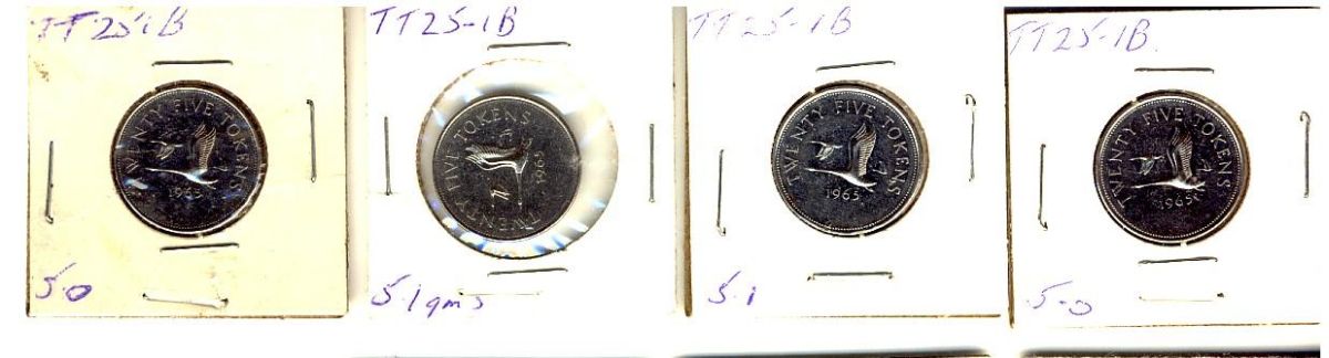 1965 25¢ Test Token, TT-25-1B. Lot of 4 coins EF to AU.