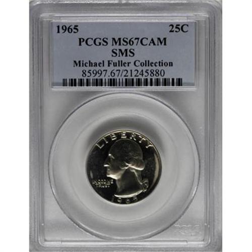 <B>1965 25C SMS MS67 Cameo PCGS.</B></I> Michael Fuller Collection. PCGS Population (30/2). NGC Census: (23/8). (#85997)<BR><BR><b>Shipping:</b> Coins & Currency (<a target="_blank" href="http://www.heritageauctions.com/common/shipping.php">view shipping information</a>)