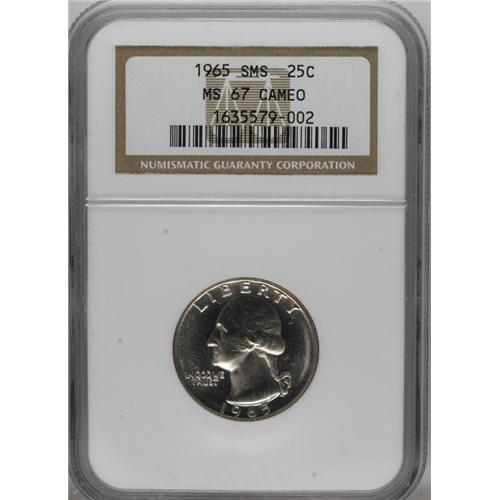 <B>1965 25C SMS MS67 Cameo NGC.</B></I> NGC Census: (23/8). PCGS Population (0/0). (#85997)<BR><BR><b>Shipping:</b> Coins & Currency (<a target="_blank" href="http://www.heritageauctions.com/common/shipping.php">view shipping information</a>)