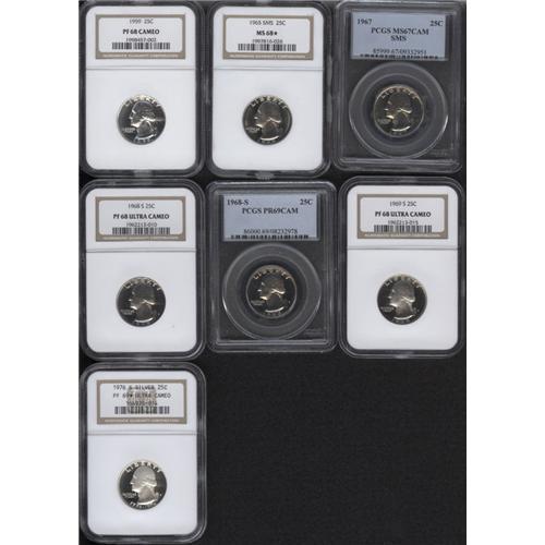 1965 25C SMS MS68 S NGC; 1967 SMS MS67 Cameo PCGS; 195