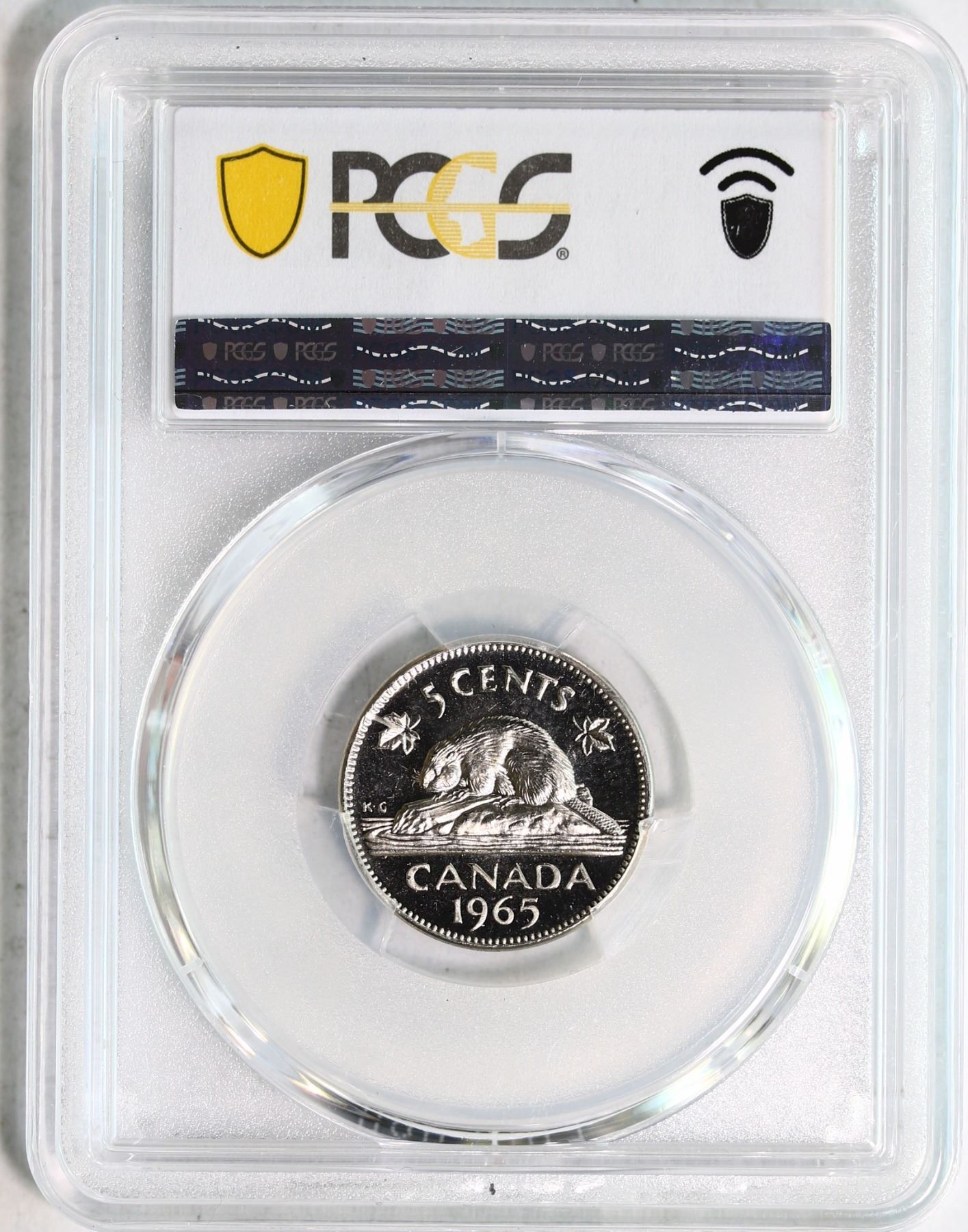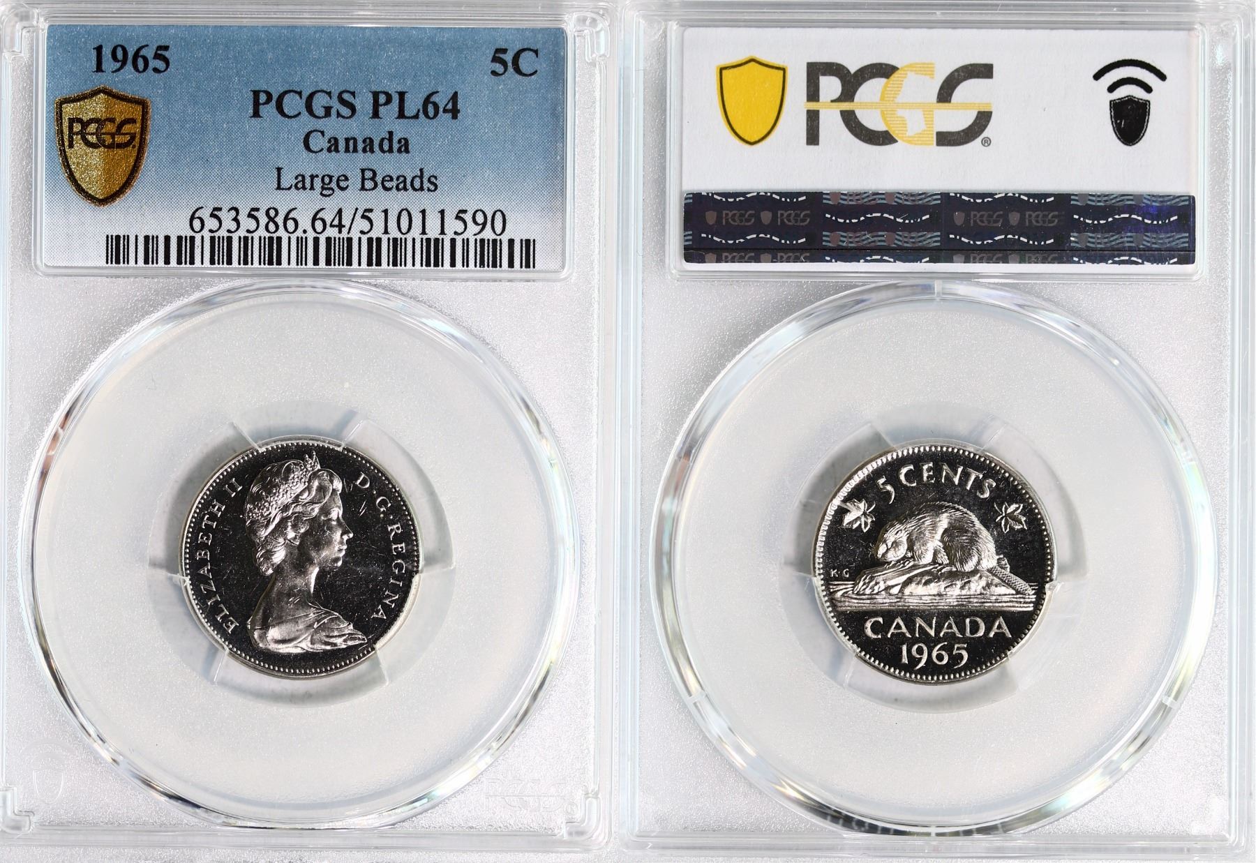 1965 5¢ Large Beads "Detached jewel" PCGS Choice Mint State-64 with light Cameo contrast. Nice fields and highly lustrous. Rarely seen and offered in this condition. A MS-63 sold for $3136 at our 2023 New Year's sale.