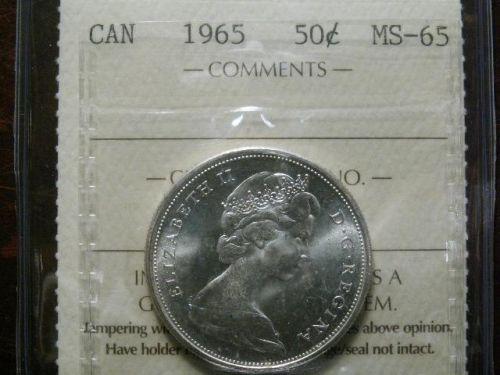 1965 50¢ ICCS MS65, Another super example, blast white and lustrous.