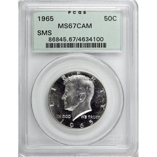 <B>1965 50C SMS MS67 Cameo PCGS.</B></I> PCGS Population (110/4). NGC Census: (134/18). Numismedia Wsl. Price for NGC/PCGS coin in MS67: $200. (#86845)<BR><BR><b>Shipping:</b> Coins & Currency (<a target="_blank" href="http://www.heritageauctions.com/common/shipping.php">view shipping information</a>)