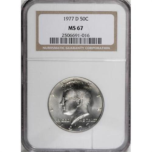 <B>1965 50C SMS MS68 NGC; 1973-D MS67 NGC;</B></I> and a <B>1977-D MS67 NGC.</B></I><BR><BR><B>Coin Engraver:</B> Gilroy Roberts and Frank Gasparro<BR><BR><b>Shipping:</b> Coin/Currency (<a target="_blank" href="http://www.heritageauctions.com/common/shipping.php">view shipping information</a>)