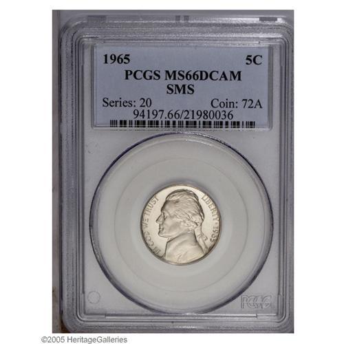 1965 5C SMS MS66 Deep Cameo PCGS. An untoned and decid 1965[5C] SMS MS66 Deep Cameo PCGS.