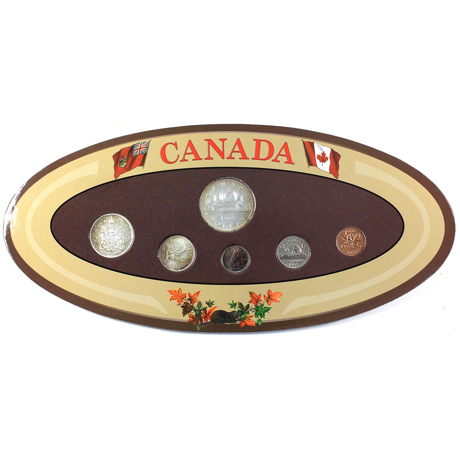 1965 6-piece Year Set in Oval Presentation Board. Coins feature natural hues of indigo and amber