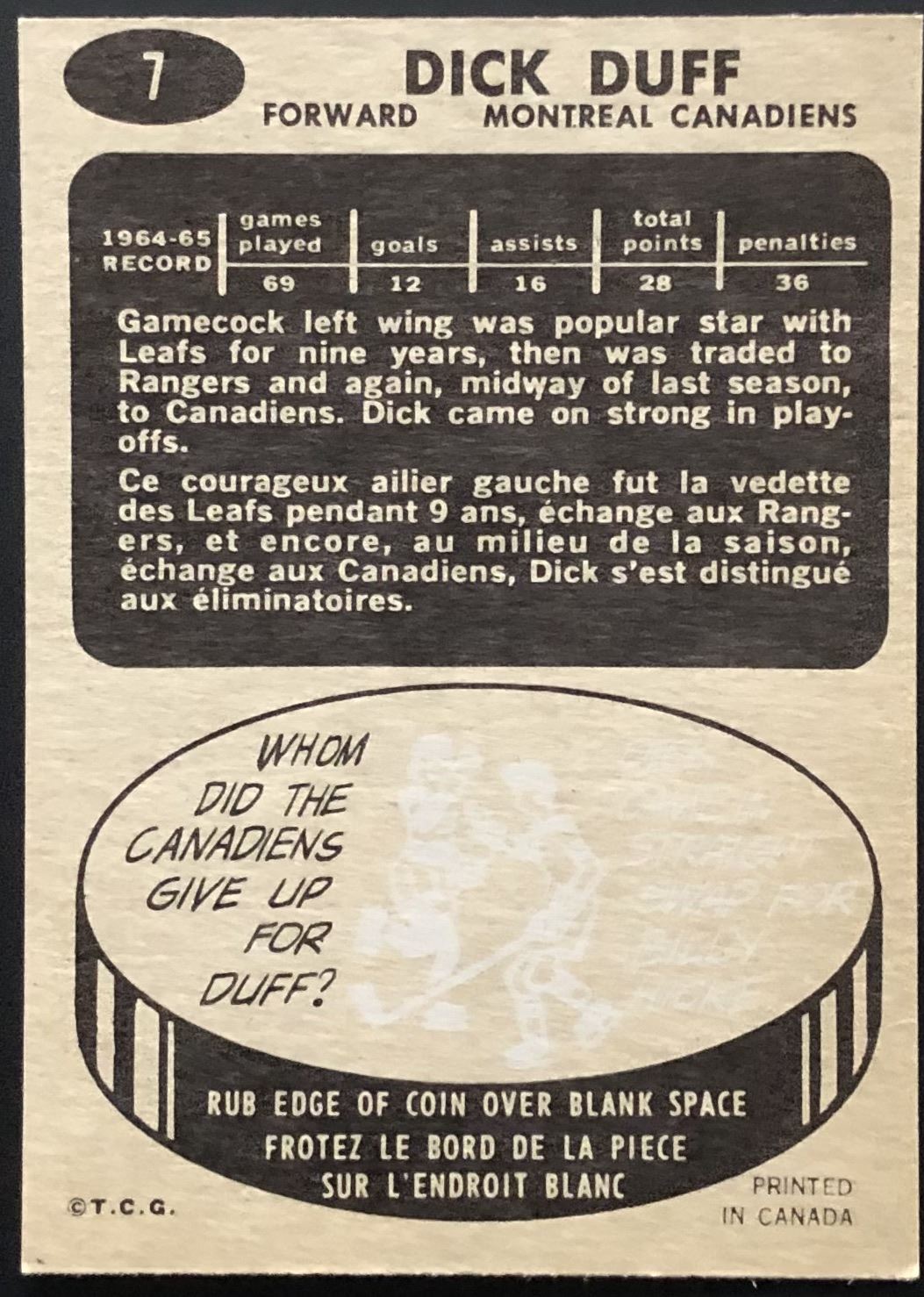 Card #7 NHL, hockey, vintage, OPC, hall of fame