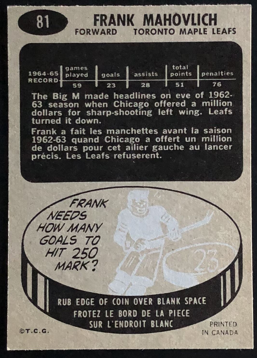 Card #81 NHL, hockey, vintage, OPC, hall of fame